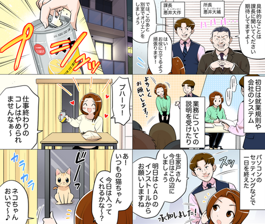 商品の説明、注意喚起のポスター、自社のPR、文字で説明する代わりに漫画を使うなど、様々なシーンでお使い頂けます。